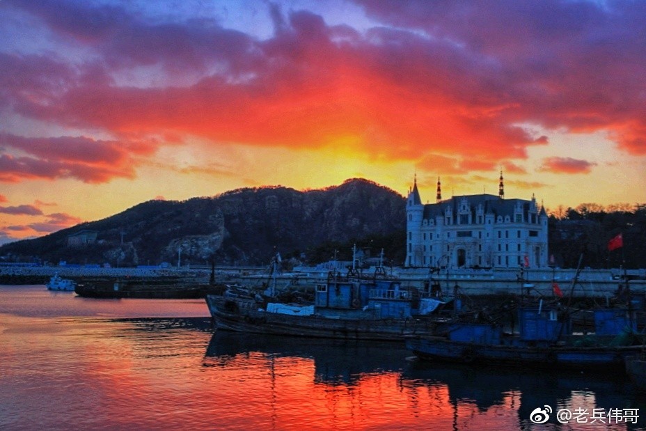大连有最美的清晨,大连的第一缕曙光从海上开始,从海平面升起的太阳,染红了天空,渔船披着晨曦开始一天的忙碌。