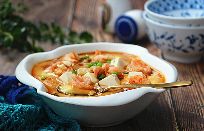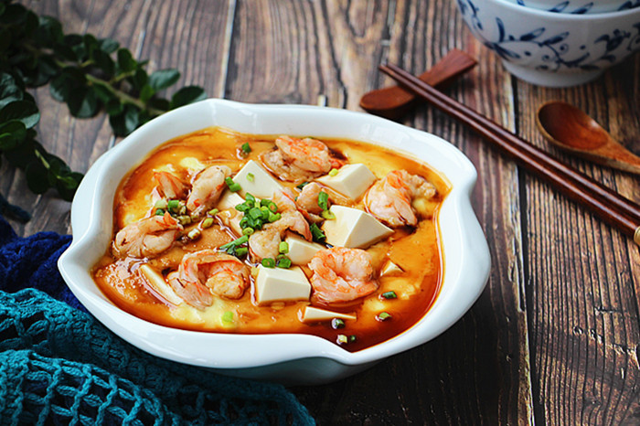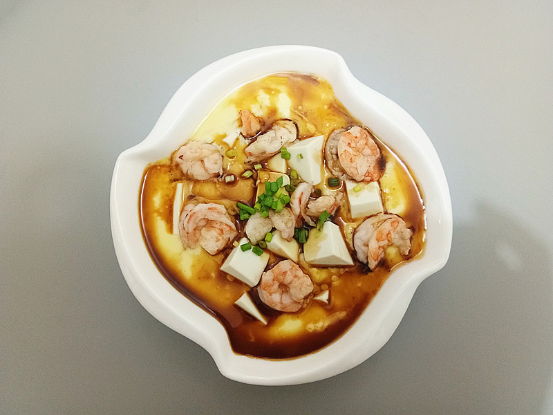 主料:鸡蛋3个、内酯豆腐1盒、鲜虾仁8只