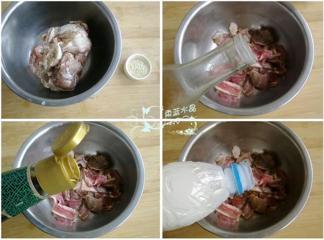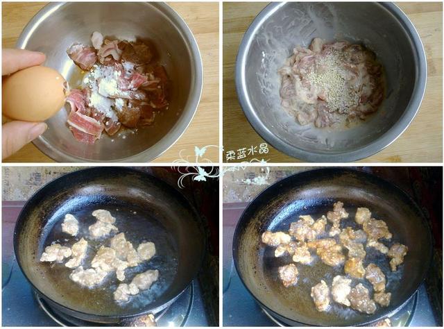 配料:白芝麻30g 羊肉300g 油 料酒 生抽 孜然 玉米淀粉 蛋清