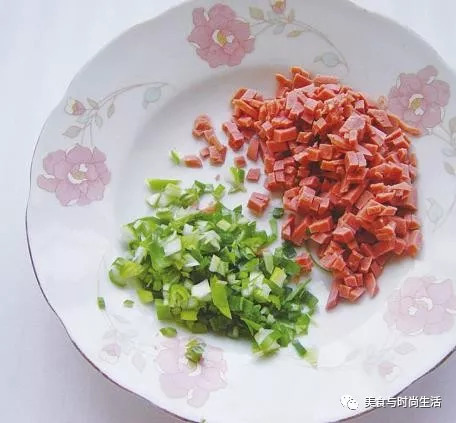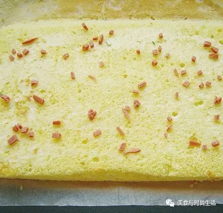 14 抹匀沙拉酱,撒入少许火腿粒。
