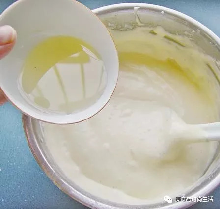 7 再倒入色拉油,用橡皮刮刀翻拌均匀。
