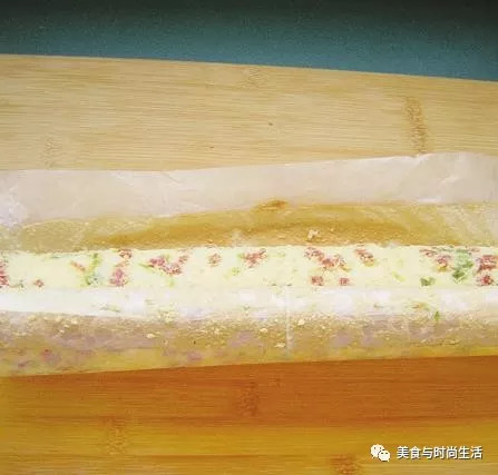 16 油纸两端拧紧,静置10分钟定形,然后打开油纸,切段即可。