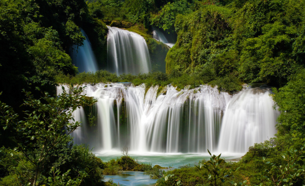 这里还有一处漂亮的赏瀑地——爱布瀑布,位于靖西城东南约16公里的化峒镇,由于地势多变、地形落差大,滩多水急,在爱布一带沿河形成了许多大大小小的瀑布群,观赏性强。