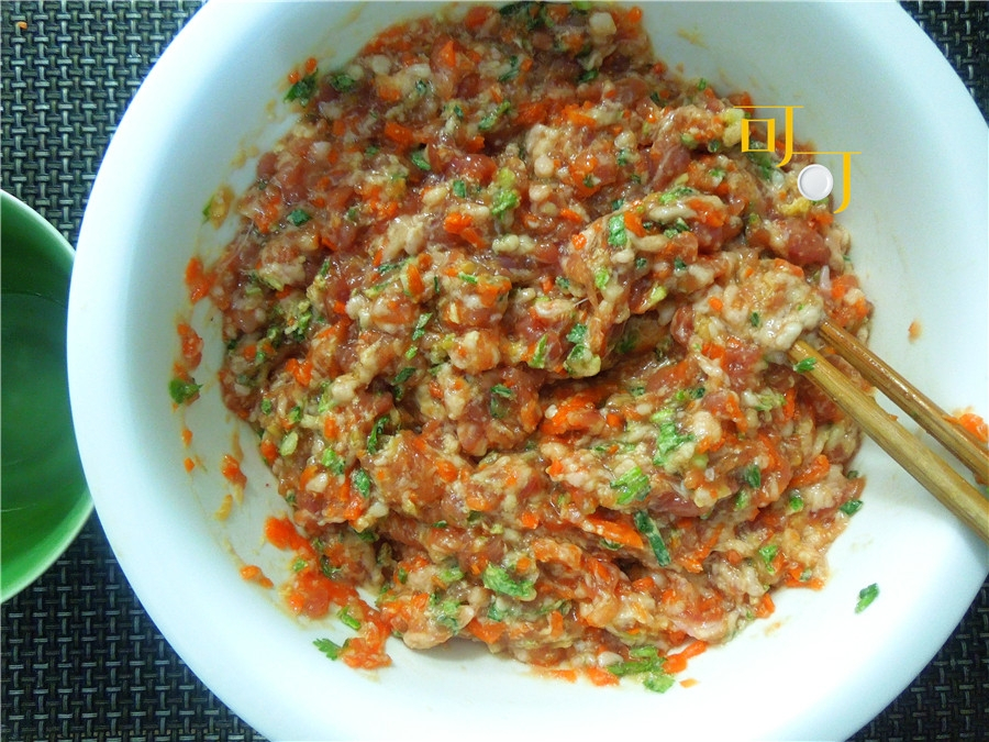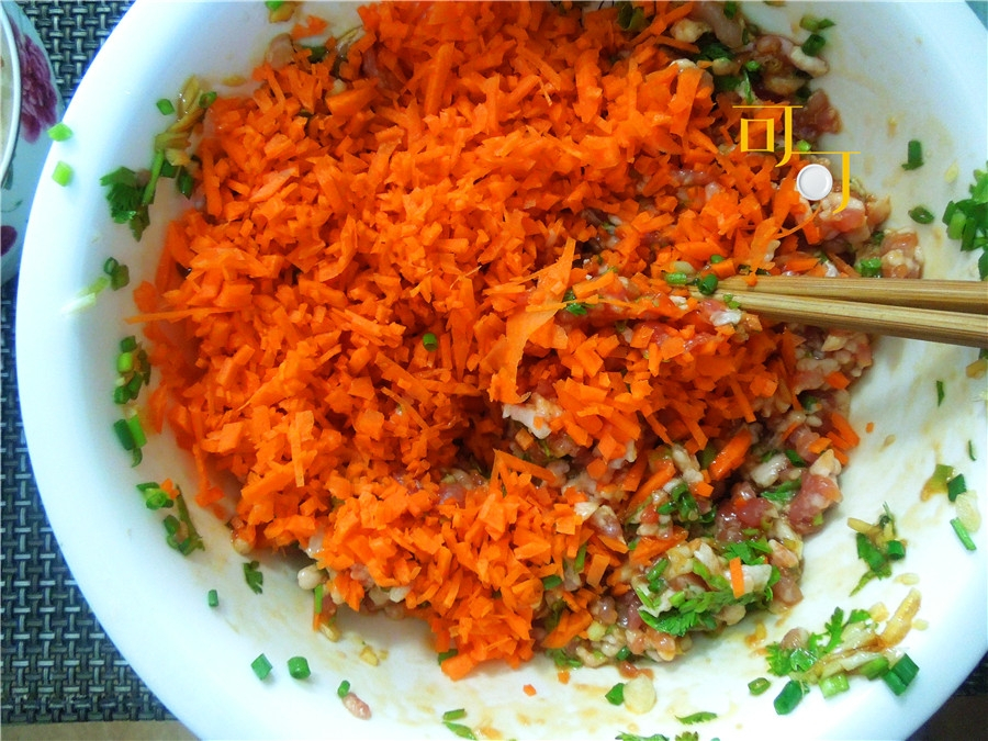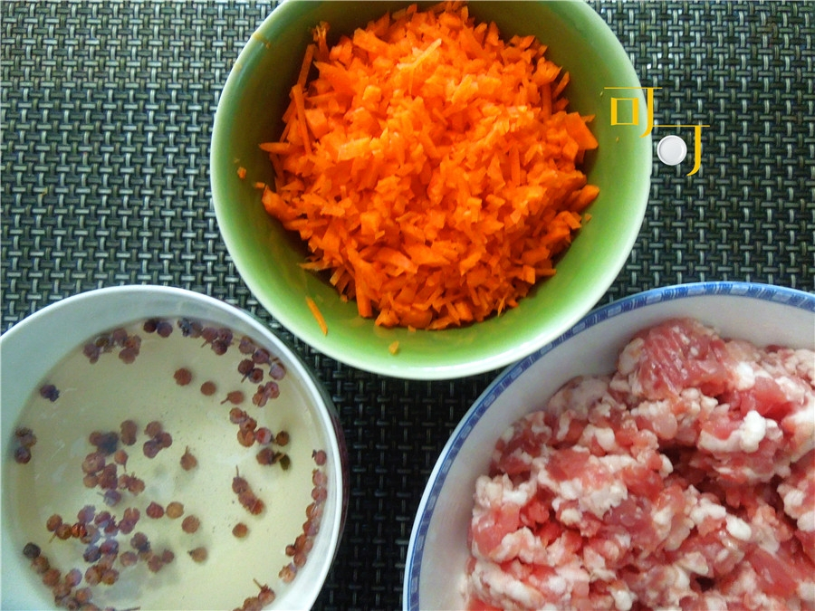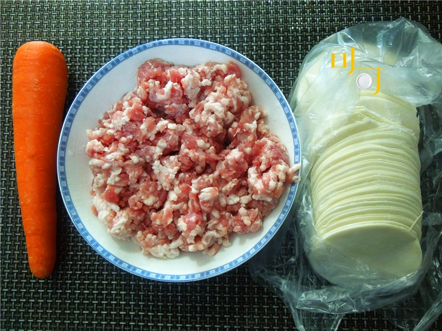 主料:水饺皮800克,胡萝卜1根150克,肉末400克
