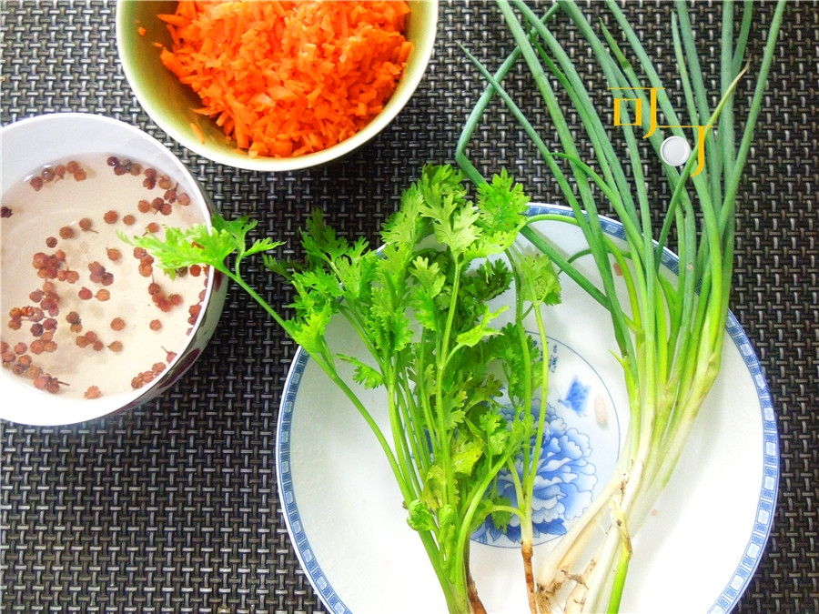 3、除了胡萝卜,馅料里我还加了小葱和香菜,吃起来就会非常香。