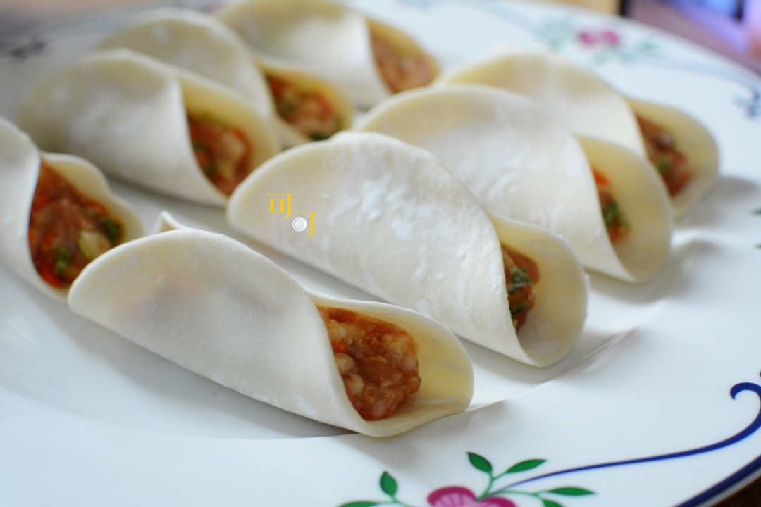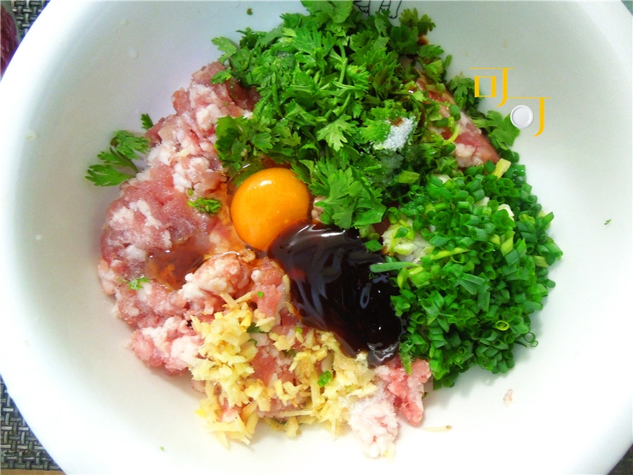步骤:1、猪肉末我是自己买好了腿肉,请肉铺师傅代剁,当然最好自己剁,水饺皮也是买来的,不如自己揉的软乎,但是从时间成本来说,也只能退而求其次了。肉馅里加入蔬菜不仅可以使营养更丰富,也能使口感更好,而且可以变化不同的花样。
